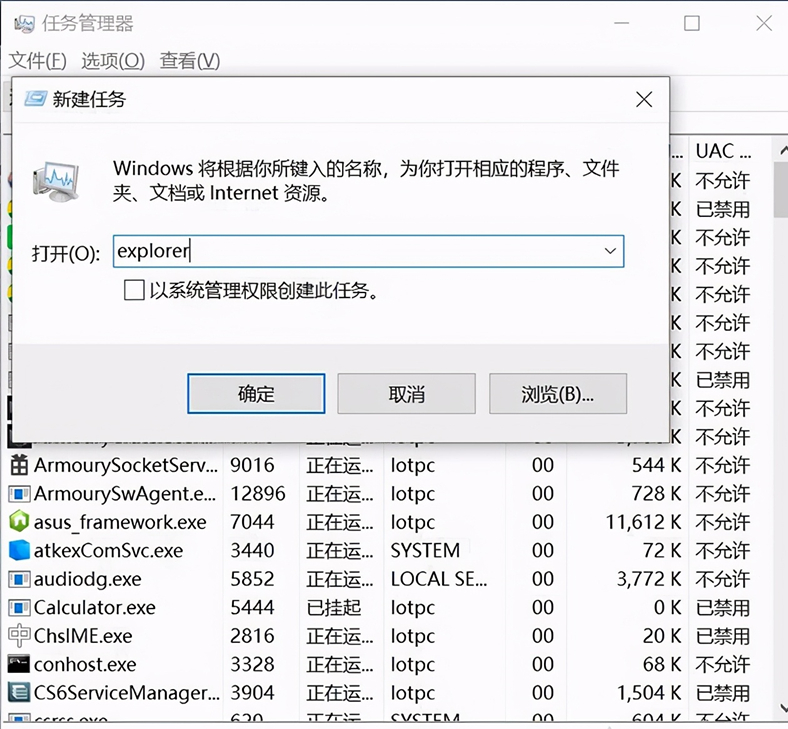 尝试一下Ctrl + Alt + Del组合键,看下是否还有反应,如果有反应的话,会进入一个蓝色的界面,点击任务管理器,然后左上角文件里可以新建或者是运行新任务,输入“explorer”并点击确定。