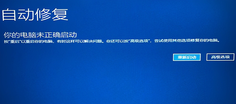 2、这时电脑就会进入自动修复的界面,我们点击“高级选项”。