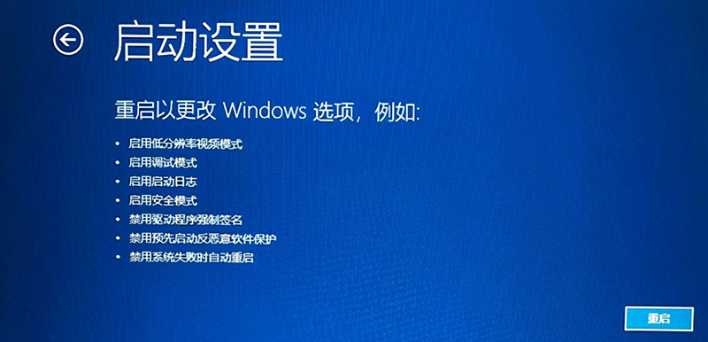 6、在启动设置界面中,我们点击“重启”,如下图所示。