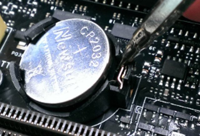 纽扣电池放电十分容易,主板上都会有一个纽扣电池,使用手扣或者起子将纽扣电池的卡榫松开之后,那么主板上的CMOS电池也随之自动弹起,这时我们直接用手取出即可,将纽扣电池放置十秒钟,并重新安装原位,我们在进行开机测试一下。
