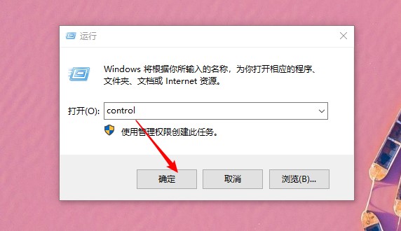 1、按下win+r键快速打开运行对话框,输入“control”回车,打开控制面板。