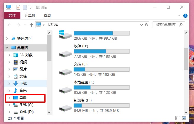 1、双击“此电脑”,在左侧栏目中找到“桌面”,右键点击选择“属性”进入。