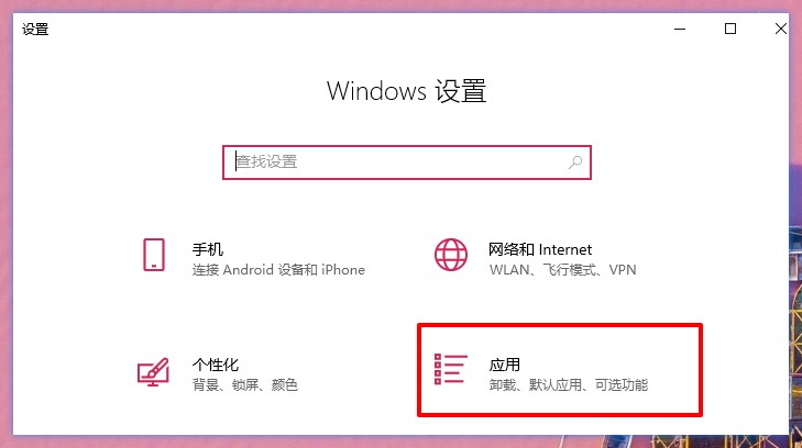 1、首先,按下win+i键打开windows设置界面,点击“应用”。