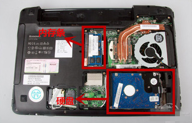 内存条两边有个卡的,扳开就可以将内存去掉,以in光盘的话上面还有个小小的螺丝,找到这个螺丝就可以取下硬盘了。