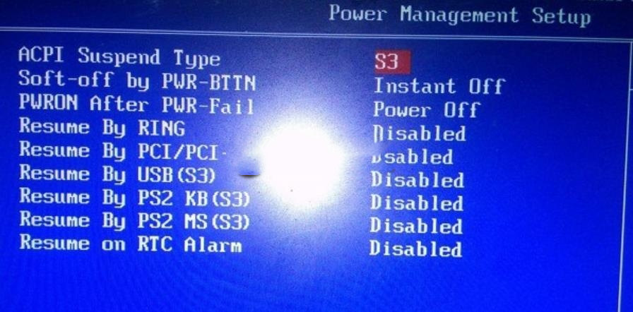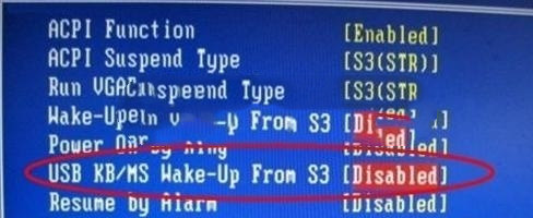 3、找到“S3 KB Wake-Up Function”或含义相似的选项(比如“Resume On KBC”、“Resume On PS/2 Mouse”等),然后用鼠标方向键移动将其设置为“Disable”,USB鼠标需要将“USB Wake-Up From S3”设为“Disable”。