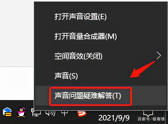解决方法:右键菜单栏右下【声音】图标,选择【声音问题疑难解答】选项,系统会自动检测声音问题,以及给出相应的解答建议。