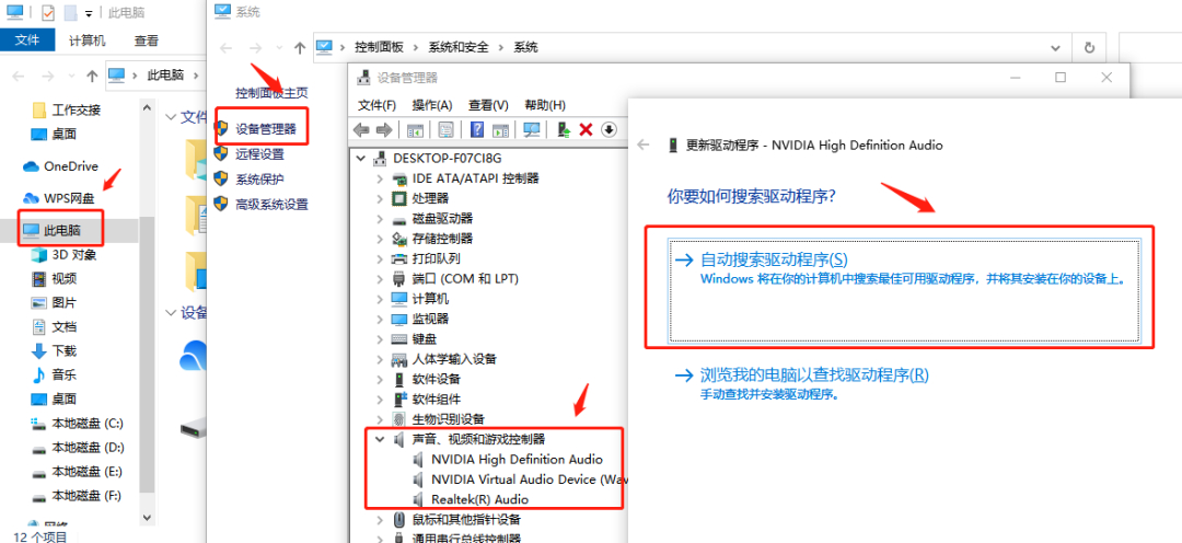 解决方法:进入【此电脑】,空白处右键点击【属性】,打开【设备管理器】选项,找到声音控制器。找到声音设备单击右键,选择【更新驱动程序】,接下来选择【自动搜索该硬件适配的驱动软件】,其他的事就可以交给Windows 了~