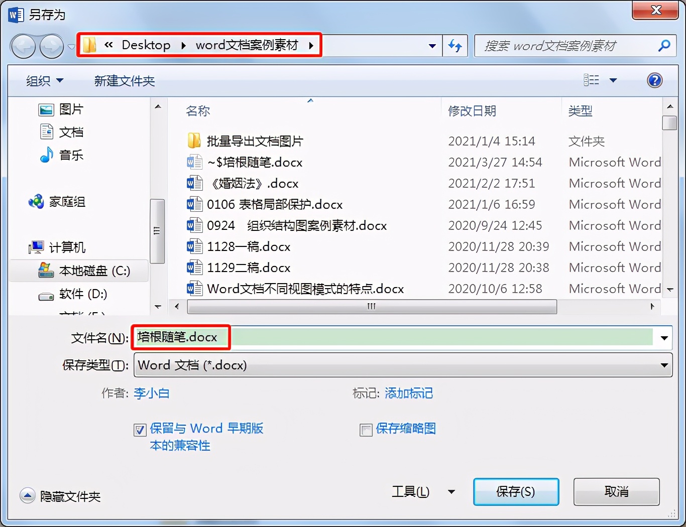 如果对修改后的文档执行“文件”-“另存为”命令,则可以另外生成一份新的文档,新文档中会保存对旧文档进行的修改,并且会弹出一个“另存为”对话框,在“另存为”对话框中可以重新设置新文档的存放位置、文件名等信息。同时,旧文档的内容、文件名、存放位置保持原样不变。