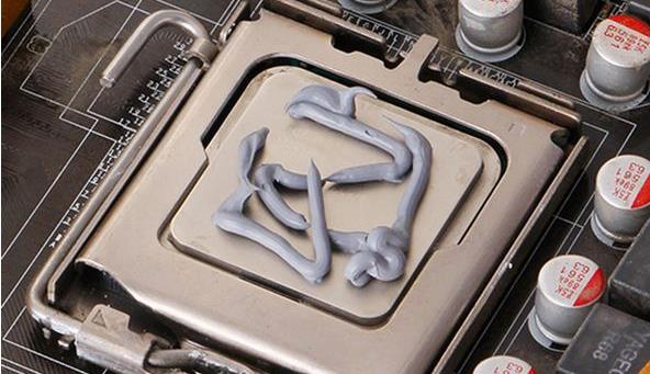 可能很多用户认为,硅脂加的越多,散热越好,但实际上并不是这样,硅脂作为“黏合材料”存在,并不是涂抹得越多越好,它存在的作用是让CPU和散热风扇的散热片紧密的粘合在一起,因为它具有稳定性强、耐高温、不会侵蚀金属接触面等显著特点。