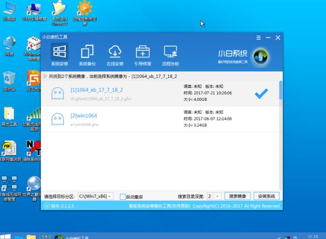 5。进入PE桌面弹出PE安装工具,选择win7系统镜像,选择左下角的“目标分区”C盘,默认为OK。最后,点击右下角的“安装系统”。