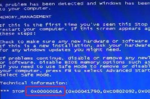解决办法:开机按F8进入安全模式,将系统进行杀毒,也可以尝试重新插拔内存,一般这代码内存损坏概率不大。