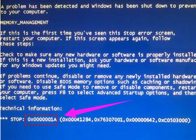 5、0x0000001A(错误表示内存管理遇到了问题)