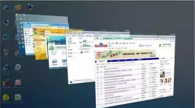 方法二:Windows键+Tab 可以将所有窗口都放在桌面,然后一个一个切换。如果你想炫酷点,按Windows键+Tab实现3D切换效果吧(适用于Win7和Win10)如下图。