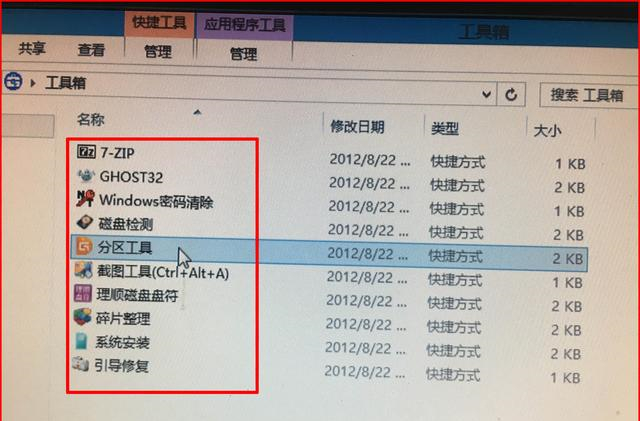 上图是已经进入U盘启动盘内的PE维护引导系统,在这PE维护系统中我们重要是了解分区工具。分区工具是一个非常重要的工具,它可以实现格式化硬盘、硬盘分区、硬盘坏道检测与修复、数据处理保存、数据恢复和硬盘格式的转换等等。如下图所示: