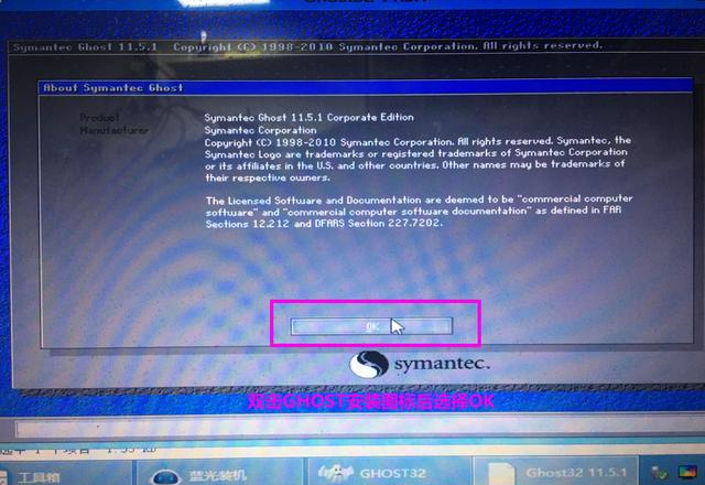 进入PE维护系统桌面后,我们双击GHOST安装系统的图标,双击后的第一个安装系统界面点击确定。