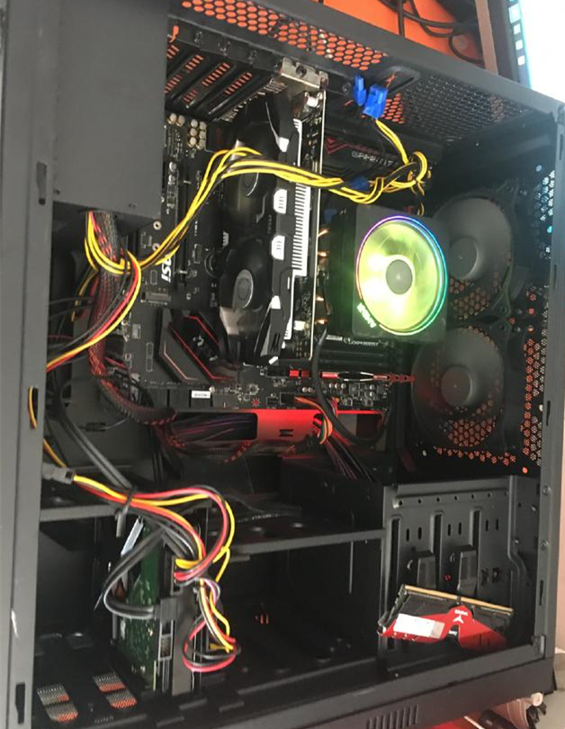 我们就按今天小编遇到的这一例来分析,这位朋友的电脑半个月没有开机,现在开机是屏幕无显示主机工作正常,如上图可以清晰的看到主机已经运作起来了,这种情况也许我们认为自己的电脑哪个硬件坏了,其实不是硬件坏了,台式机的硬件不是那么容易坏的,出现这类情况90%以上都是硬件的兼容性出问题了。这时我们就要进一步的排查看是哪一个硬件出的兼容性故障。如图所示的机器配置是如下: